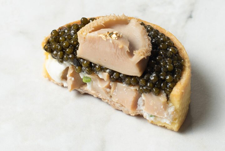 Experience the luxurious harmony of Kaviari Ossetra caviar, chive crème fraîche, and a tantalizing blend of savory, sea-inspired flavors, culminating in a complex yet satisfying hazelnut aftertaste. Decorated with 24K gold flakes.